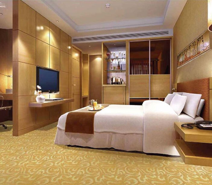 The plush carpet has novel and varied patterns, elegant and noble colors, and three layers of full circle or circle cut combined patterns with different plush heights, which have a strong relief feeling and excellent decorative effect.